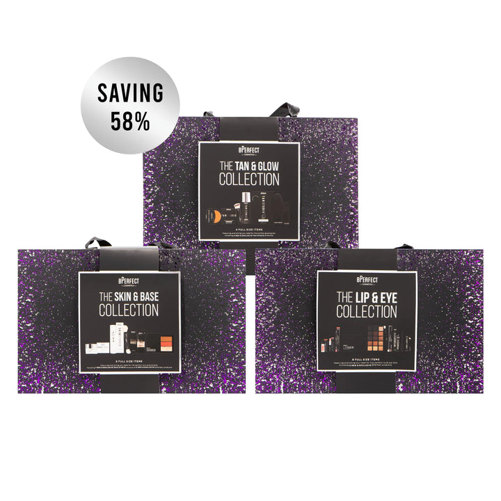 This luxe bundle includes The Skin & Base Collection Gift Set - 5 full-size products including 2 NEW and EXCLUSIVE launches, The Tan & Glow Collection Gift Set- all your festive tanning needs in one featuring a BRAND NEW Tan Studio - Tanning Mousse, and The Lip & Edit Collection Gift Set featuring the NEW Legacy Vol. 1 Shadow Palette!