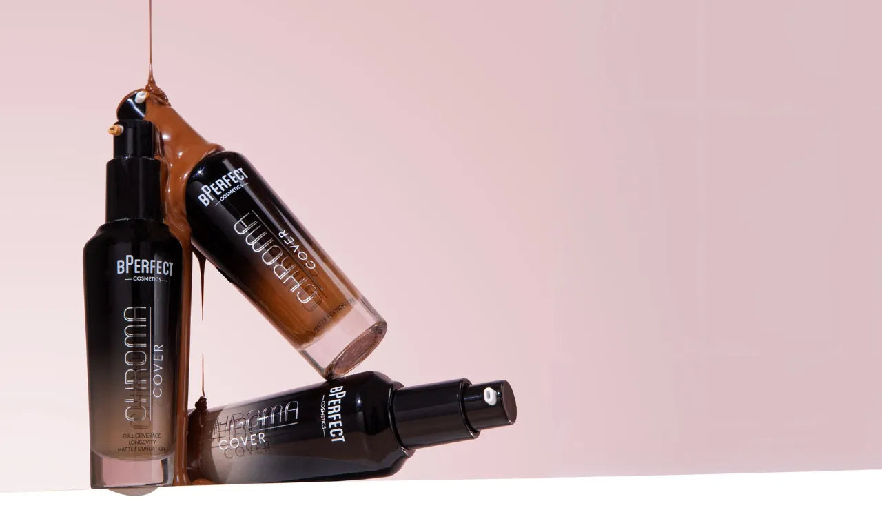 BPerfect Cosmetics Chroma Cover foundation bottle on a white background