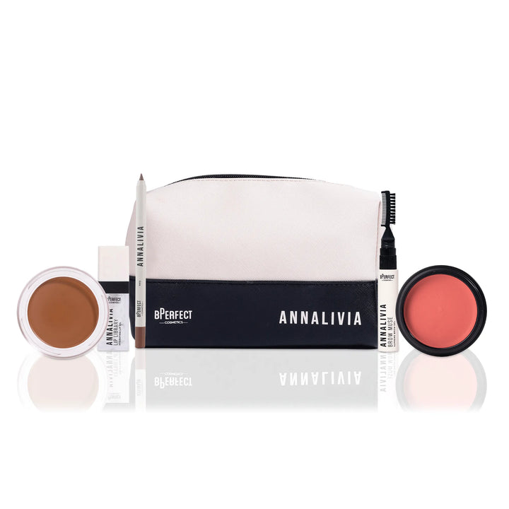 Featuring Annalivia's must-haves - from the Cronzer Cream Bronzer in Tae to her sell out Brow Muse - this bundle has everything you need for a soft, sculpted and effortlessly chic finish, complete with a luxury travel bag for beauty on the go.