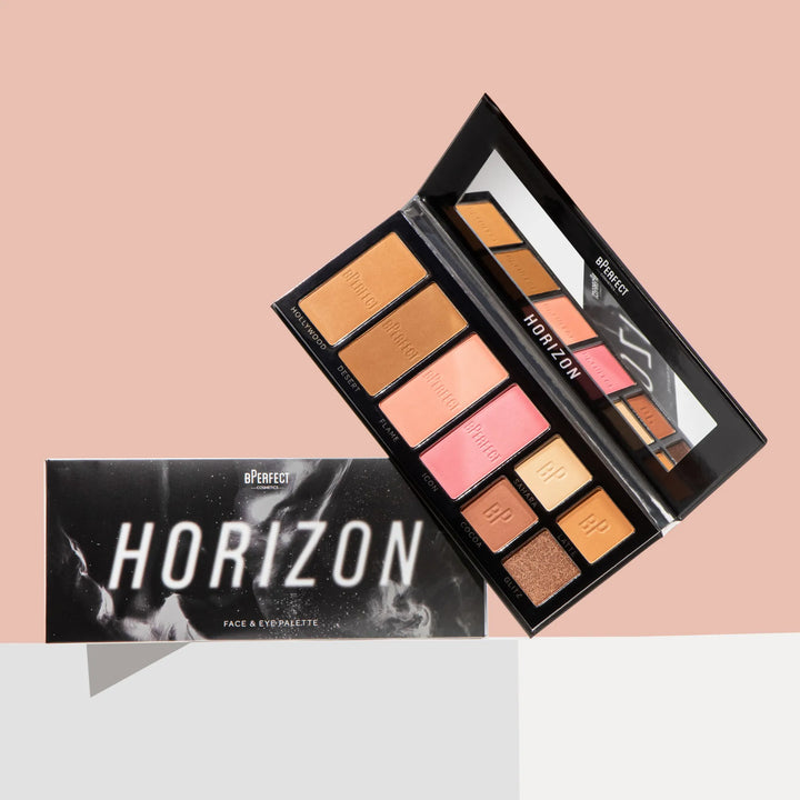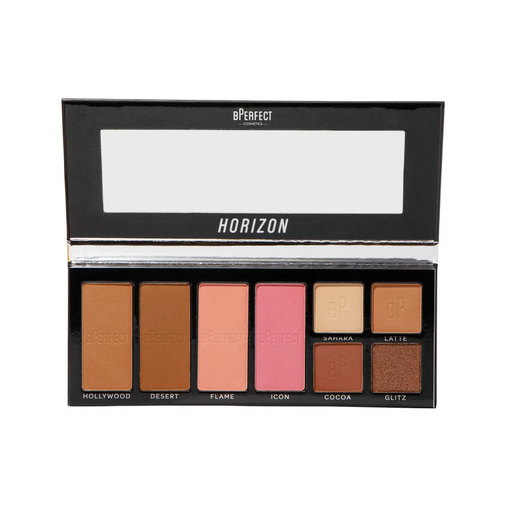 Horizon Face & Eye Palette contains a powder bronzer duo, a powder blush duo and 4 eyeshadow shades.