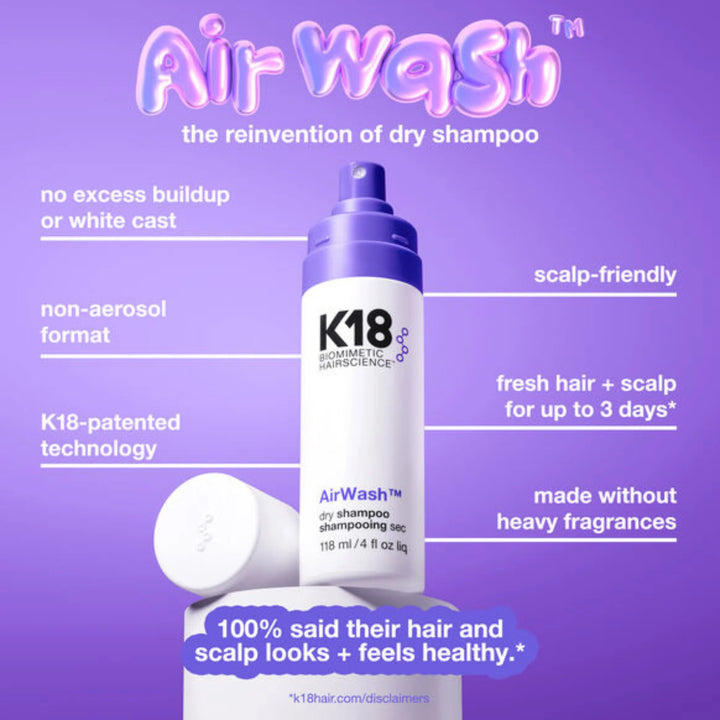 AirWash (47ml): A lightweight cleansing mist that refreshes hair between washes by neutralising odours and absorbing excess oils - no water required.