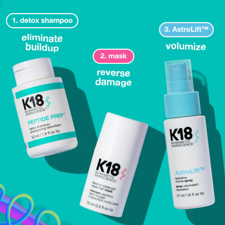 This great value starter kit features three essentials from the K18 treatment range, specially created for fine, thinning or ageing hair.