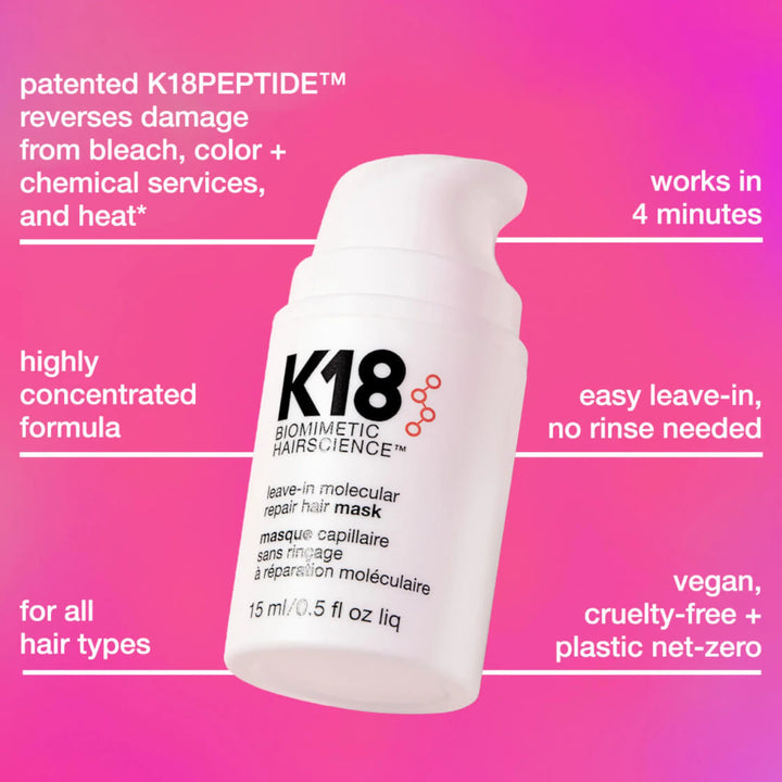 Leave-In Molecular Repair Hair Mask (15ml): Repairs damage at the innermost level with K18Peptide™, restoring strength, softness, and elasticity.