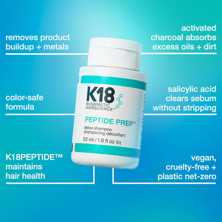 Peptide Prep Detox Shampoo (53ml): A colour-safe clarifying shampoo that removes buildup and primes hair for treatments or styling.