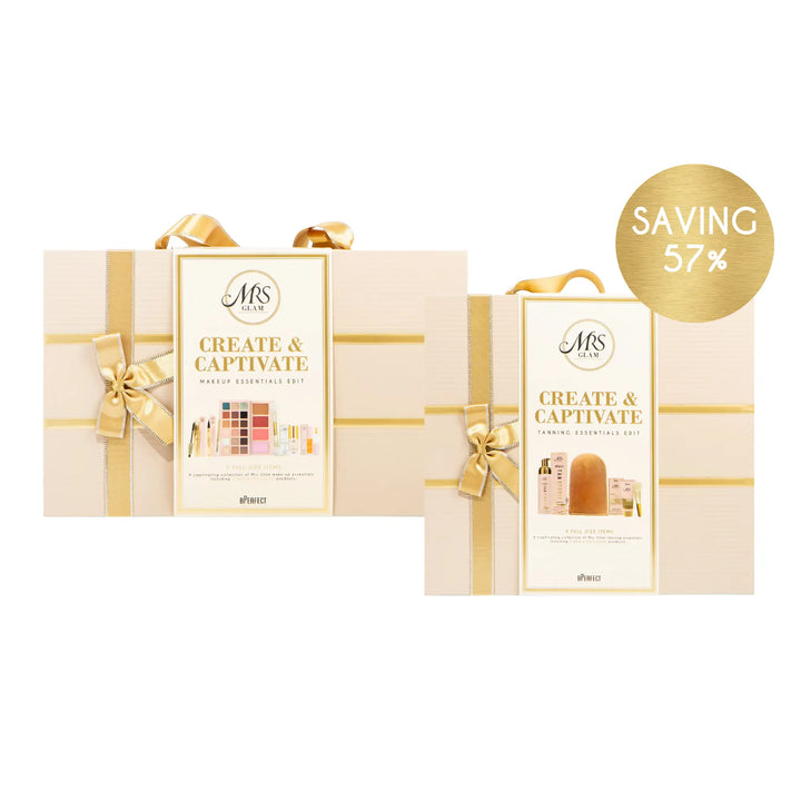 Step into the spotlight with the Create & Captivate Gift Set Duo – a luxurious pairing of the NEW Mrs Glam Gift Sets, designed to keep you flawless all festive season long.