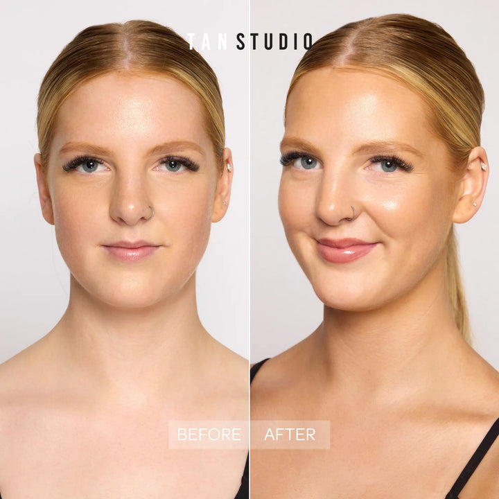 Hold the tanning mist nozzle at least 15cm away from your face, close eyes and spray evenly over face and neck or blend in with Tan Studio - Diffusion Body Brush.